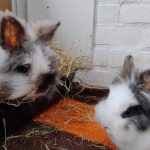 Ik, Rosie, ben een dwergkonijntje met een leeuwenkopje. Ik houd erg van knuffelen en ga daar ook lekker voor liggen. Verder ben ik heel actief en nieuwsgierig en zet ik graag mijn ren op de kop. Mijn vriendje Kiwi is net zo actief en nieuwsgierig als ik, daarom passen we ook zo goed bij elkaar. Kiwi vindt een aai op zijn tijd best fijn, maar gaat vooral graag lekker zijn eigen gang. Zoals u op de foto’s van ons kunt zien, heeft Kiwi een lange vacht. Dit is heel mooi en schattig, maar het raakt ook snel in de klit. Kiwi heeft dan ook veel vachtverzorging nodig. Hij moet twee keer per week geborsteld (en geknipt) worden om zijn vacht mooi en klittenvrij te houden. Wij zoeken een baasje die ons een fijn huis binnen (i.v.m. Kiwi’s vacht) kan bieden en die het niet erg vindt om veel tijd te steken in de vacht van Kiwi.