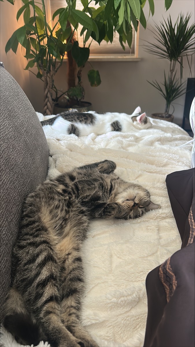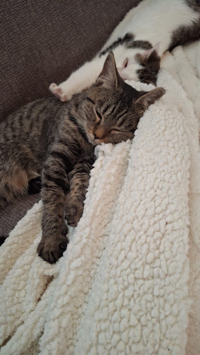 Even een berichtje van Coco (alias Dries) en Minou (alias Diego). De eerste weken in hun nieuwe huisje zijn voorbij en het gaat goed met beide katjes. Heel even was het spannend omdat Coco toch wel heel erg aan het niezen was. Gelukkig konden we jullie bellen voor advies en was een bezoek aan de dierenarts niet nodig. Fijn dat dit zo kon. Beide katjes hebben hun plekje gevonden. Minou slaapt het liefst de hele dag, behalve als ze eten ruikt. Als je even niet oplet springt ze stiekem op het aanrecht of wil ze het eten van je bord eten. Verder is het een lieverd en ligt ze het liefst op je. Coco vindt het leuk om te spelen, door het huis te rennen en ook om lekker te knuffelen.